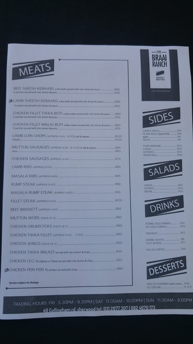 Welcome to Randerees Braai Foods, a culinary gem nestled in Sherwood, Durban. Celebrated for its authentic braai experience, this brand offerings encompass a delightful menu that pairs generous portions with vibrant flavors, ensuring every meal is memorable. Customers rave about the "best braai in South Africa," highlighting the quality and preparation of the dishes.